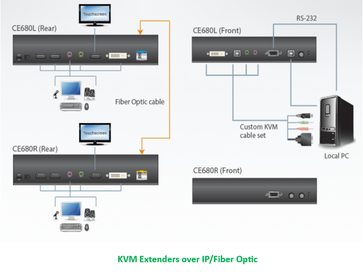 KVM Extenders (Keyboard, Video, and Mouse extenders) are used to allow users to control a computer or server from a remote location